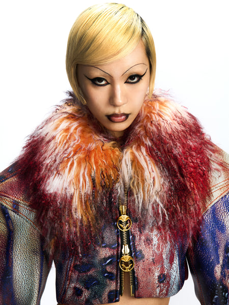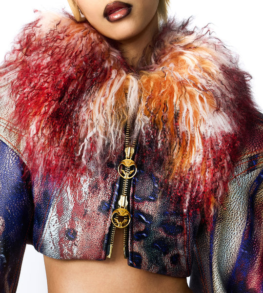 CROPPED FAUX LEATHER JACKET WITH SHEARLING COLLAR