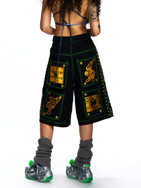 LOOSE-FIT LOW-RISE DENIM CAPRI PANTS